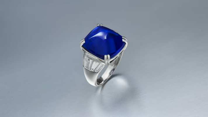 A platinum ring featuring a 16.58-carat Kashmir cabochon sapphire with tapered baguette-cut diamonds sold for $1 million at Christie’s online jewellery sale. Its pre-sale estimate was […]